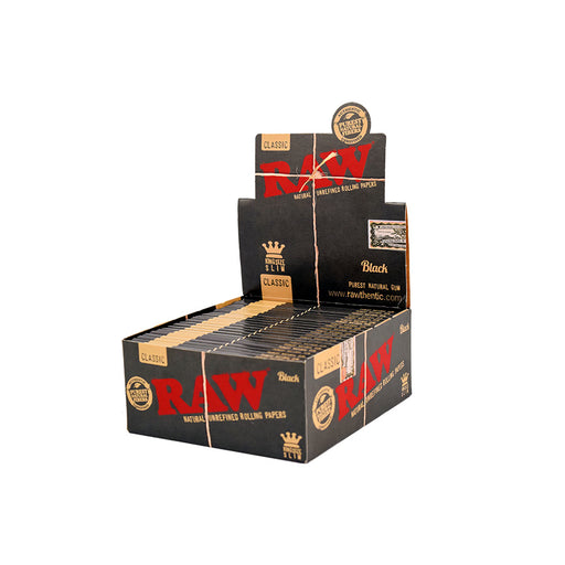 View full detailsRAW Black King Size Slim Rolling Papers Paper dimensions: 110mm x 44mm 32 sheets per pack50 packs per case RAW Black is the thinnest natural unble...