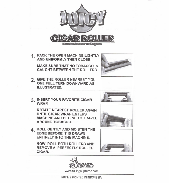 The best feature of this rolling machine is that you choose the length and diameter of the end results; load the roller end to end for a long cigar or short on one side to roll a shorty. Load the roller to full capacity for a fatty or sprinkle a little bit in for a skinny one. No matter how you like yours, this Juicy Jay's rolling machine will roll it perfectly.